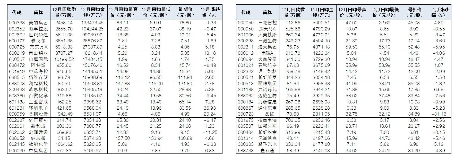 根据Wind统计,截至12月24日,12月已有200家公司实施回购,其中,44家公司回购金额超过2000万元。从二级市场来看,环旭电子、首钢股份、南山铝业、工业富联等股股价12月涨幅居前。