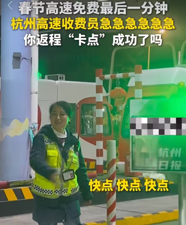据报道,记者当晚在武汉龚家岭收费站看到,14个进出通道全部开启,多辆小客车抢在免费车道落杆前通过,也有车主“卡点”失败,交了几百元通行费。